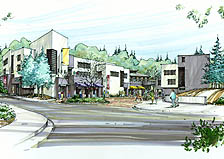| This architect's drawing shows what the bookstore-quarry plaza might look like