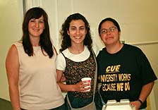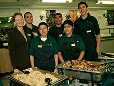 As if reading their minds, that's exactly what Chancellor M.R.C. Greenwood told staff at last week's "Thank Goodness for Staff" breakfast that she hopes to provide. In an unexpected announcement, Greenwood told nearly 700 campus employees who turned out to enjoy "Pancakes and Jazz with M.R.C." about her intention to give staff employees awards of up to $300. Although the arrangements haven't been finalized, Greenwood said she is optimistic that all career, partial-year career, contract, and limited (formerly known as casual) staff employees will receive a one-time award for up to $300 near the end of this fiscal year. Greenwood explained that the funds are from the Awards and Recognition Program, and that full-time employees would be eligible for the maximum of $300, while part-timers would receive an amount prorated to the percentage time they work. The awards are intended to recognize the contributions staff employees make to accommodating campus growth and to ensure continued excellence toward the realization of UCSC's millennium goals. Ineligible employees include those with academic, student, and senior management appointments. Before the proposal can be finalized and put into action, the campus must meet its obligations to notify various union representatives, noted Willeen McQuitta, director of Staff Human Resources. The future use of Awards and Recognition Program funds is being discussed, she added. Greenwood's announcement, as well as the melodic tunes provided by the jazz trio Euphonic Tonic, contributed to an upbeat mood as staffers gathered in the Stevenson Dining Hall and on the patio to fill up on a lavish breakfast of eggs, pancakes, sausage, bacon, tofu scramble, pastries, potatoes, fresh fruit, and more. The buffet won rave reviews. "We need our breakfast in the morning to get us going!" exclaimed senior custodian Jackie Baeza, who enjoyed the spread with her colleagues Halina Kubis and Bea Jantz. Helen Mayer, program coordinator at the Women's Center, was impressed by the turnout. "It's like everybody has come out of the woodwork," she said. "It's great." Greenwood and other campus administrators donned yellow-and-blue "Thank Goodness for Staff" T-shirts as they mingled with the crowd. "It feels more intimate being in this kind of space rather than on the big field," said groundskeeper Darien Rice, who had breakfast with friends on the patio. "And there's plenty to eat!" Lucky members of the crowd won prizes that included T-shirts, wine, commuter mugs, monthlong parking passes, recreation passes, and more. The breakfast was organized by the UCSC Staff Advisory Board. Ryan Andrews, manager of the Fitness Center and a newcomer to the board, suggested the jazz trio after it performed at an East Field House event earlier this year. Drummer Bobby Stadler is a UCSC student about to graduate with a degree in environmental studies. He and fellow musicians Steve Armstrong on guitar and Steve Steele on bass entertained the crowd for two hours. "It was good to have this," said Linda Biancalana, who works for Physical Plant. "It's good to get together in the morning. People are chipper. Look, everybody came!" |